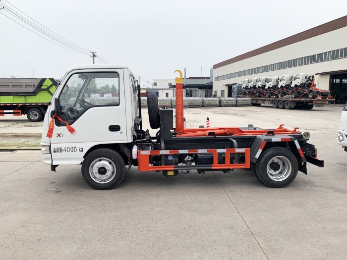 車廂可卸載式垃圾車,又稱勾臂式垃圾車、拉臂式垃圾車。該車廣泛適用與城市街道學(xué)校垃圾處理,可一車配備多個斗,各個垃圾點放置多個,帶自卸功能,液壓操作,方便傾倒。在平日里可將車載垃圾箱放置到各個垃圾收集站,待垃圾收集滿后,該車可直接開赴至垃圾站,通過液壓系統(tǒng)的操控,可將垃圾車后座上加裝的勾臂放下,掛住站內(nèi)垃圾箱前端的連接點,將垃圾箱拉至車體的后座上,此時即可啟動車輛,將垃圾運送至垃圾處理站內(nèi),進(jìn)行自卸式傾倒。該車主要的優(yōu)點就是可一車配多斗,一輛車就可以維持?jǐn)?shù)個垃圾收集站的運轉(zhuǎn),效率高,且箱體為密封式設(shè)計,不會造成二次污染。